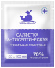 Салфетка из бумажного текстилеподобного материала, пропитанная 70% раствором этилового спирта и герметично упакованная в многослойный материал.