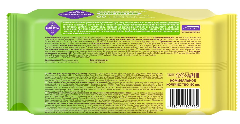 Я твоя салфетка - детские салфетки с ромашкой и витамином Е mix GM с пластиковым клапаном.
