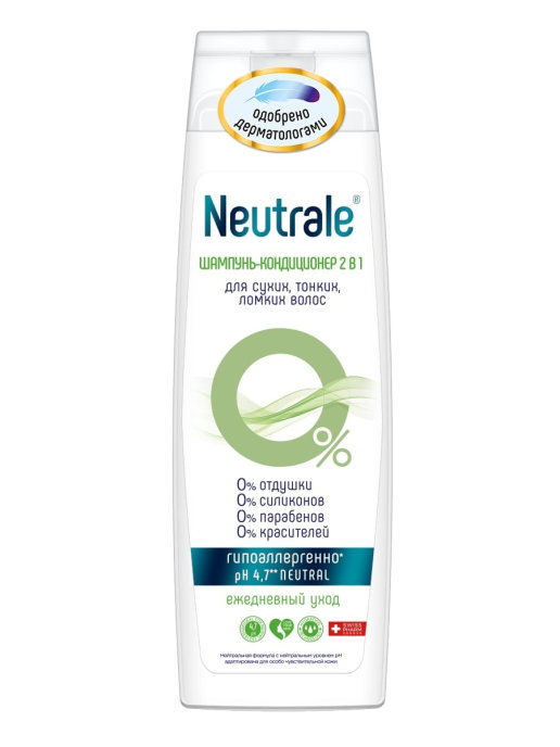 - NEUTRALE Шампунь-кондиционер 2в1 для сухих, тонких, ломких волос - Гелеобразная текстура прозрачного цвета, без запаха.