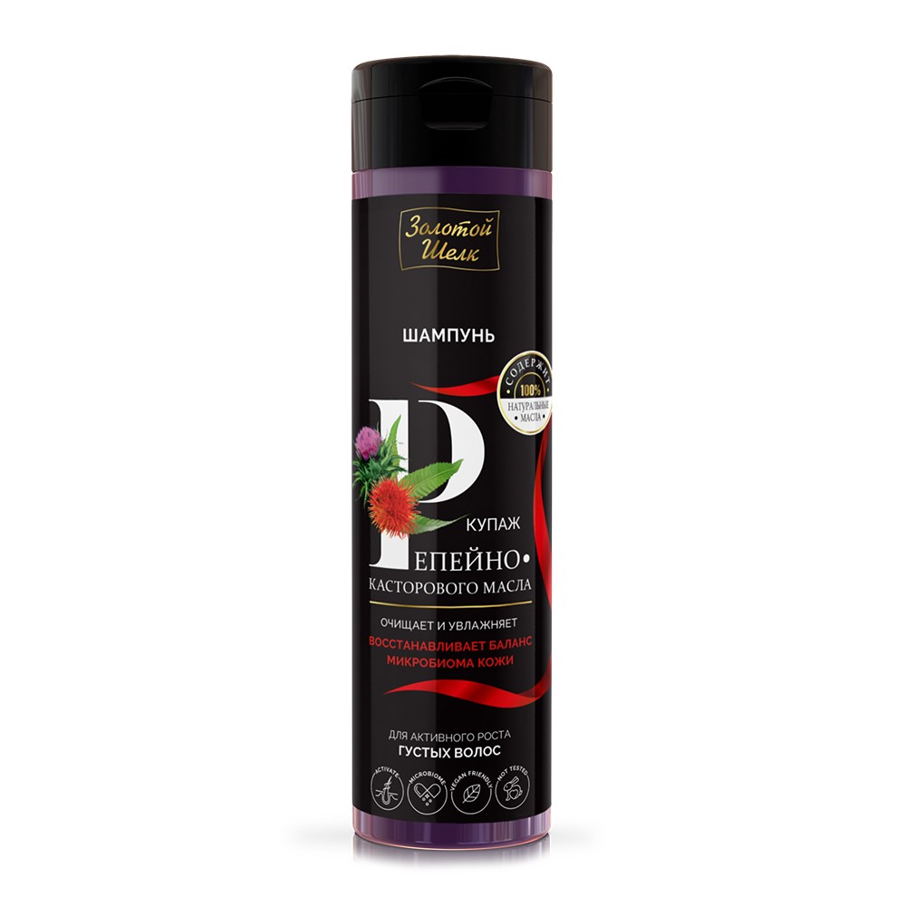 ЗОЛОТОЙ ШЕЛК ШАМПУНЬ Д/АКТИВ РОСТА ГУСТЫХ ВОЛОС КУПАЖ РЕПЕЙНО/КАСТОРОВОГО МАСЛА - для всех типов волос.