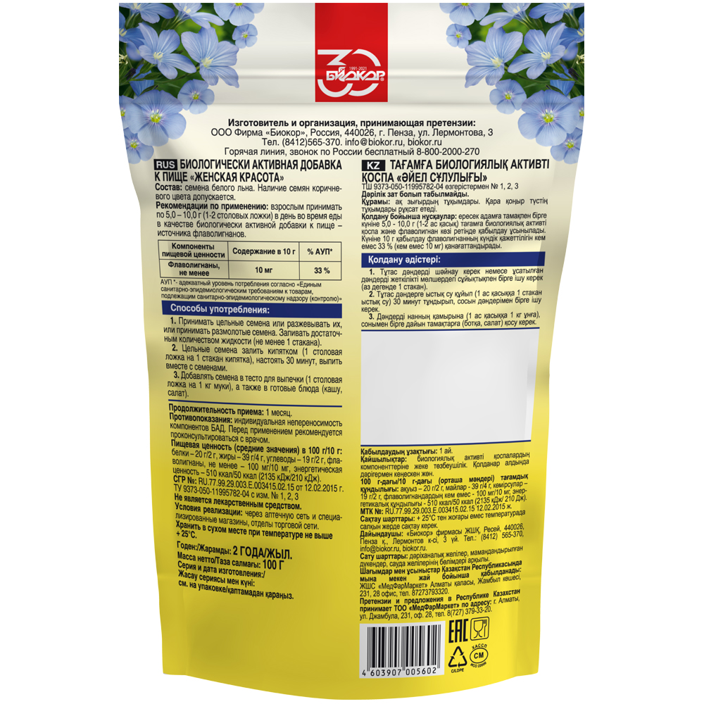 ПРЕИМУЩЕСТВА СЕМЯН БЕЛОГО ЛЬНА «БИОКОР «ЖЕНСКАЯ КРАСОТА»: