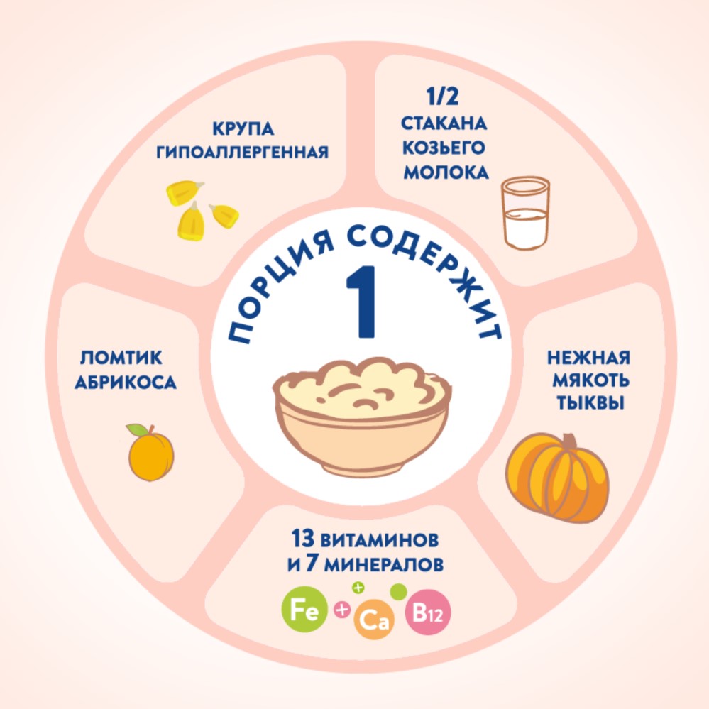 -32 % натурального козьего молока в составе каши придают ей нежный сливочный вкус;