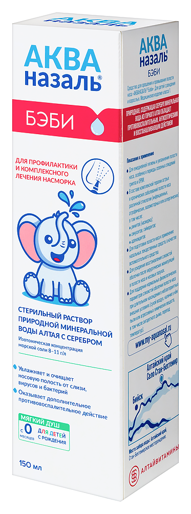 Средство для орошения и промывания полости носа для детей и взрослых, представляет собой прозрачную бесцветную жидкость без запаха, с солёным вкусом, являющуюся стерильным раствором натуральной минеральной воды с добавлением морской соли в аэрозольном металлическом баллоне, в комплекте с анатомической насадкой для носа и пластиковым колпачком.