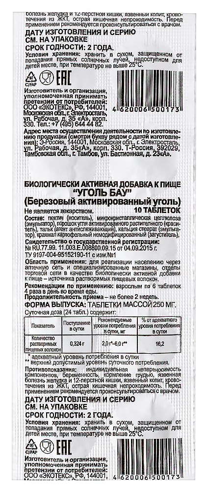 Уголь БАУ - это биологически активная добавка к пище, содержащая активированный уголь, который является натуральным сорбентом и способен связывать и выводить из организма вредные вещества и токсины.