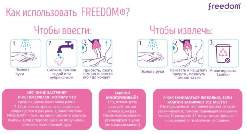 Тампоны FREEDOM® обеспечивают не только надежную защиту от выделений в критические дни, но и дают возможность не отказываться от своих обычных увлечений и планов! Заниматься любовью, спортом, плавать в бассейне, танцевать, встречаться с друзьями в СПА или отдыхать на пляже - с FREEDOM® все это возможно даже в критические дни!