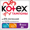 KOTEX ТАМПОНЫ MINI - гарантируют максимально комфортное введение благодаря поверхности SilkyCover, а гидрофильные волокна Ultrasorb быстро впитывают влагу.