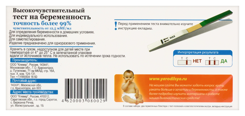 Тесты на беременность предназначены для определения «гормона беременности» - хорионического гонадотропина человека (ХГЧ) в моче. Количество этого гормона резко возрастает через 1-2 недели после зачатия и его концентрация увеличивается в организме женщины в 5-20 раз (с 5 мМЕ/мл до 25-100 мМЕ/мл). Поскольку зачатие может произойти только в период овуляции (в середине цикла), то к моменту тестирования (1й день задержки менструации) концентрация ХГЧ превышает порог чувствительности теста «Я Родился!» как минимум в 2 раза. Таким образом, Вы можете получить диагностический результат теста «Я Родился!» НЕ ТОЛЬКО с первого дня задержки менструации, но и ЗА 1-2 ДНЯ ДО НАЧАЛА МЕНСТРУАЦИИ.