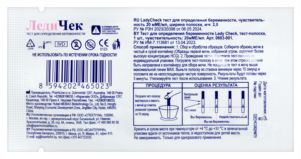 Тесты на беременность LadyCheck «реагируют» на хорионический гормон, который начинает вырабатываться в организме женщины через 7 дней после наступления беременности (когда оплодотворенная яйцеклетка прикрепляется к стенке матки и начинает развиваться).