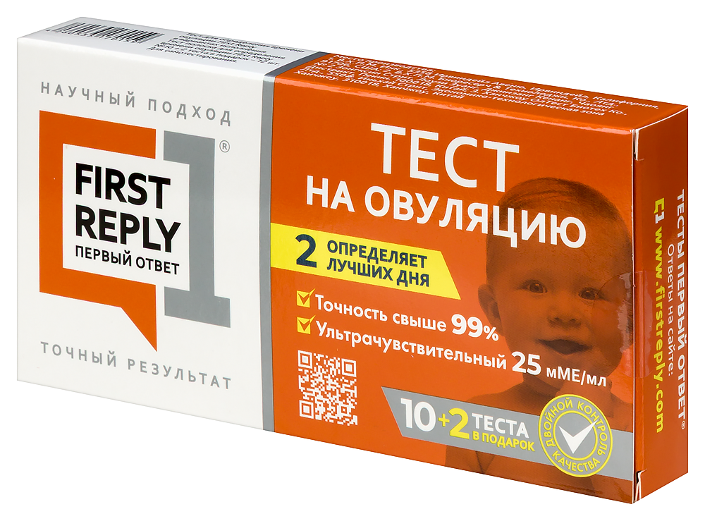 -Овуляция представляет собой выход яйцеклетки из яичников. В моче всегда присутствует незначительное содержание лютеинизирующего гормона (ЛГ). Примерно в середине месячного цикла концентрация ЛГ повышается и происходит всплеск, который способствует выходу яйцеклетки из яичников (овуляция) в течение 14-48 часов. Для наступления беременности яйцеклетка должна быть своевременно оплодотворена сперматозоидом. Поэтому самым благоприятным временем для оплодотворения является период овуляции. ТЕСТ FIRST REPLY (ПЕРВЫЙ ОТВЕТ) позволяет быстро и легко определить время наступления овуляции.