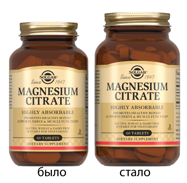 Для того, чтобы производить наиболее эффективную продукцию, компания «Солгар» использует цитратную форму магния, которая хорошо усваивается (на 35 - 38%, в то время как уровень усвоения неорганических солей магния не превышает 5%).