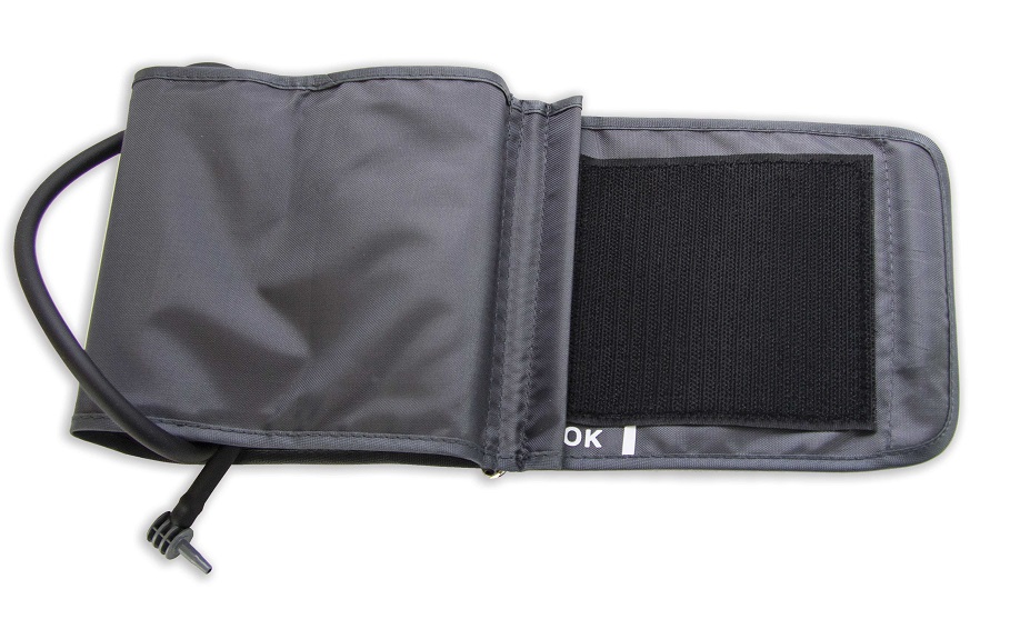 На конце трубки закреплен штуцер, предназначенный для соединения пневмокамеры манжеты с пневматической системой измерителя артериального тонометра при подключении его к гнезду на корпусе тонометра. Камера вложена в нейлоновую манжету с простроенной окантовкой с закругленными краями.