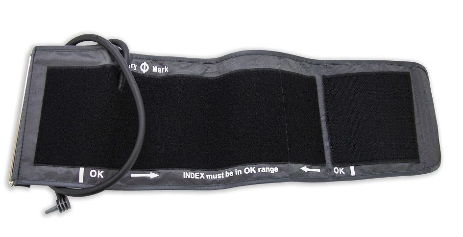 "< INDEX" . Стрелка этого знака при измерении должна находиться внутри зоны, ограниченной стрелками следующего знака: "> Index must be in OK range <". Выполнение этого условия означает, что размер манжеты соответствует окружности руки пациента.