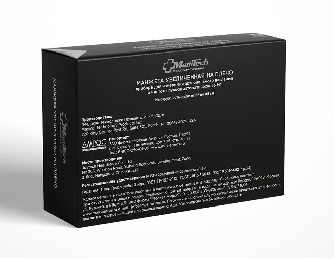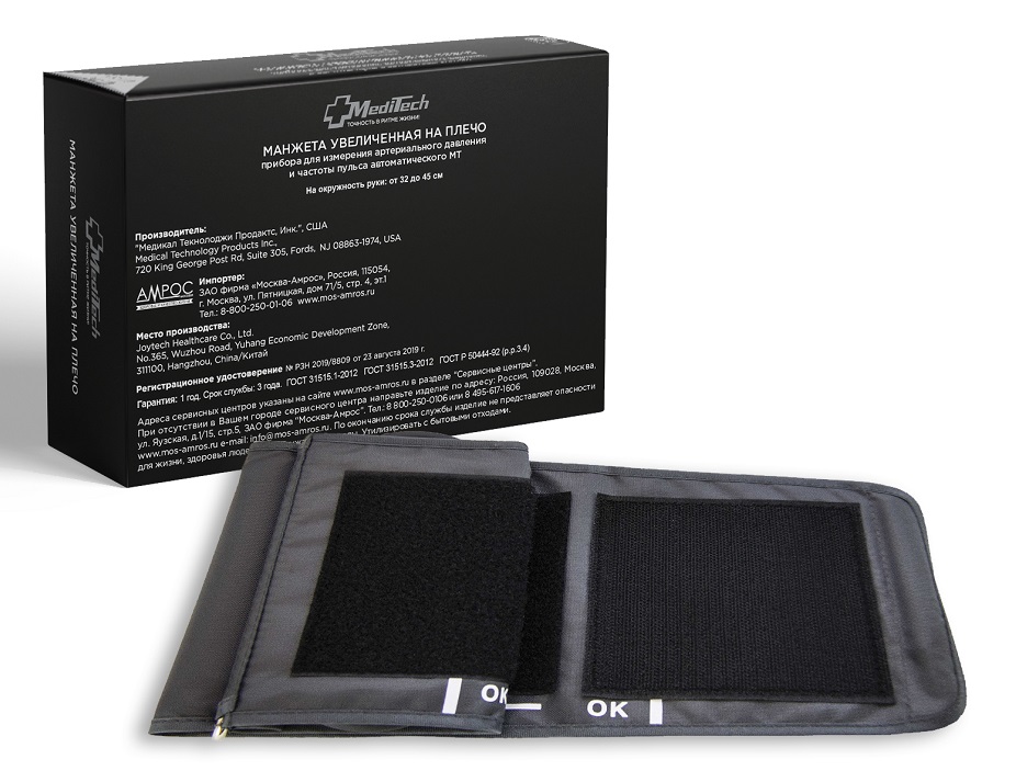 Увеличенная манжета на диаметр плеча 32-45 см подходит для автоматических тонометров MediTech (модели на плечо МТ-30, МТ-40, МТ-50) и предназначена для измерения артериального давления у взрослых. Пневмокамера имеет встроенную трубку из ПВХ для подсоединения к тонометру.