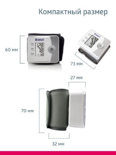 Запястный тонометр MED-57 разработан швейцарским брендом B.Well, экспертом в медицинской технике. Регулярно отслеживайте давление, пульс и частоту сердечного ритма (аритмию). Алгоритм IntellectActive - адаптивная технология бережного измерения уже на этапе накачивании манжеты. Как результат - точные показания давления, комфортное измерение.
