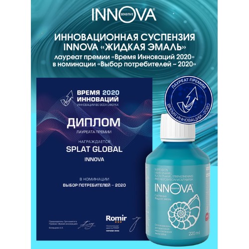 ИННОВА Суспензия Жидкая эмаль с терапевтической дозировкой Гидроксиапатита (1%) в активной наноформе действует подобно жидкой пломбе: проникает в открытые дентинные канальцы и полностью их закрывает, укрепляет эмаль, снижает чувствительность зубов, в том числе в пришеечной области.