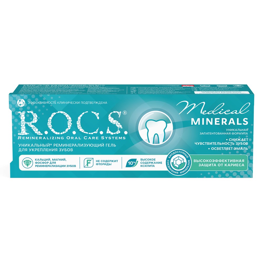 Укрепляющий реминерализующий гель для зубов R.O.C.S. «Medical Minerals» разработан научно-исследовательской лабораторией WDS (Россия-Швейцария). Продукт содержит активные, легкие в усвоении минеральные соединения, и предназначен для использования, начиная с первых месяцев жизни (0+).