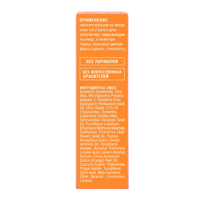 формирует на губах тонкую нежирную пленку, которая защищает губы зимой (мороз, ветер, солнце), во время занятий спортом (резкий ветер, долгое пребывание на солнце, перепады температуры и влажности), после болезни (если появилось чувство стянутости и сухости)