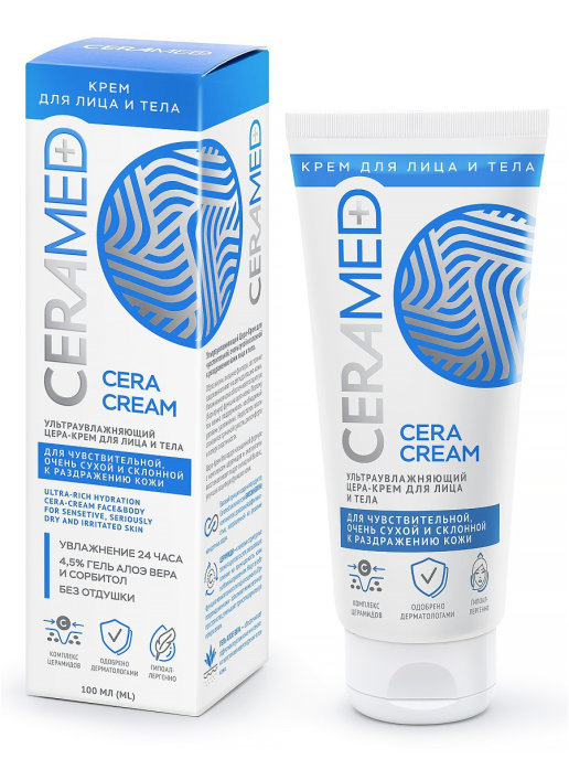 - Цера-Крем благодаря насыщенной формуле с комплексом церамидов и эмолентами восстанавливает гидро-липидный баланс, улучшая защитную функцию кожи.