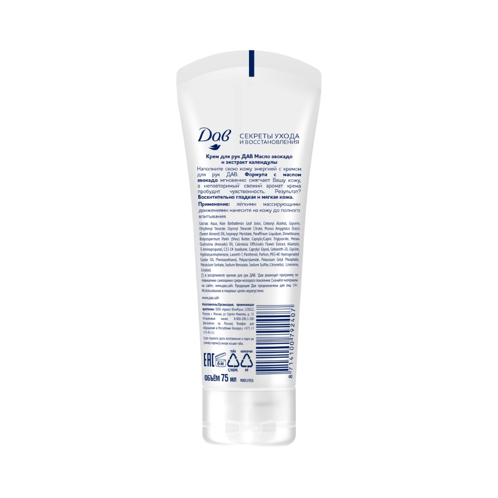 DOVE КРЕМ ДЛЯ РУК МАСЛО АВОКАДО И ЭКСТРАКТ КАЛЕНДУЛЫ - Питательный и восстанавливающий для сухой кожи.