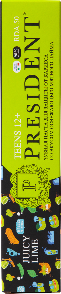 ПРЕЗИДЕНТ ЗУБНАЯ ПАСТА JUICY LIME - обеспечивает защиту от кариеса, заботу о деснах и эффективное очищение.
