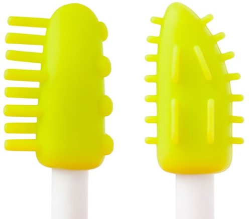 Подходит для массирования раздражённых дёсен и чистки первых зубов.