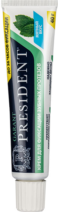 ПРЕЗИДЕНТ КРЕМ ГАРАНТ ДЛЯ ФИКСАЦИИ ЗУБНЫХ ПРОТЕЗОВ - обеспечивает надежную защиту десен при ношении зубных протезов, экстрасильная фиксация до 36 часов благодаря специальной формуле.