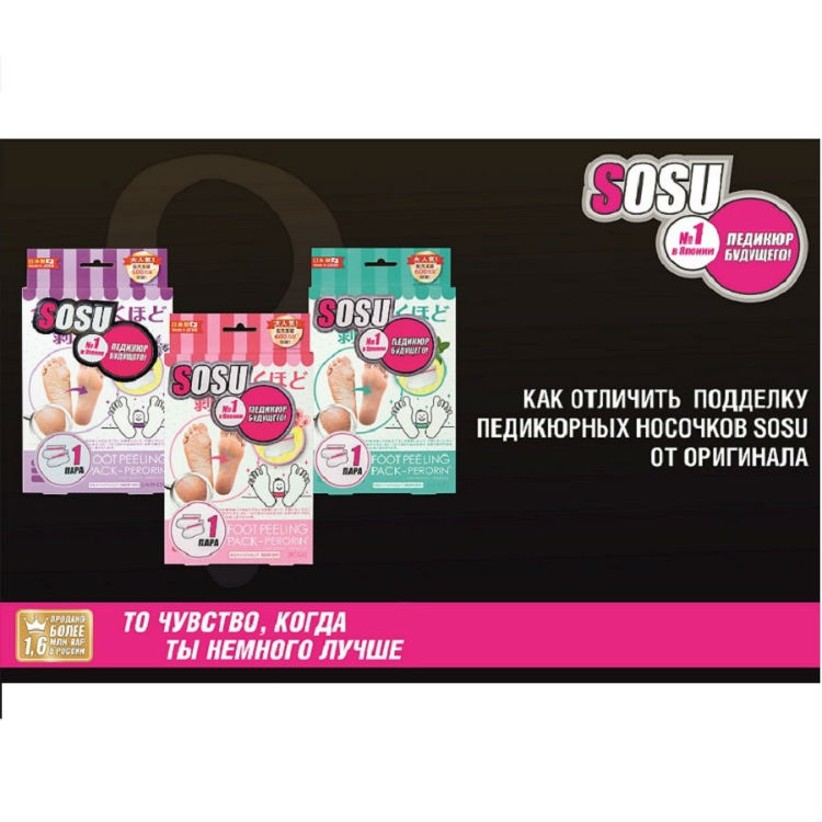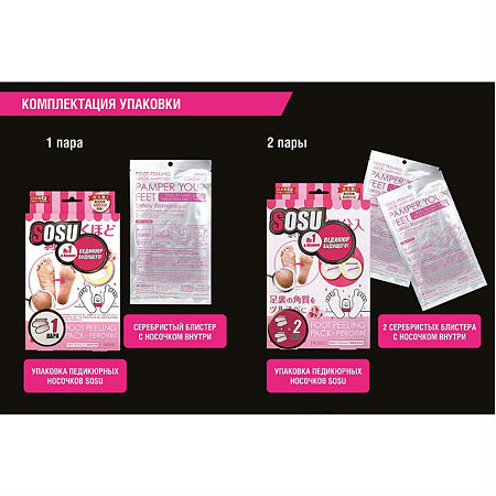 Одноразовые носочки "Sosu" - это инновационный способ педикюра на дому без риска и траты времени на посещение дорогостоящих процедур.