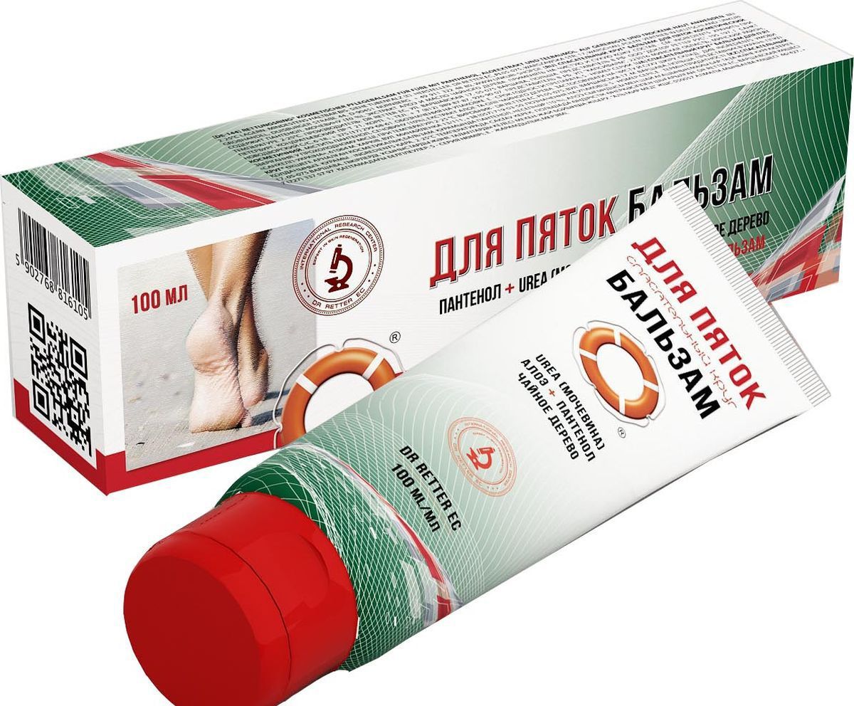 Бальзам для пяток. Содержит пантенол, мочевину (10%), экстракт алоэ, эфирное масло чайного дерева. Продукт предназначен для ухода и регенерации гиперсухой кожи ступней и пяток, обладает интенсивными заживляющими свойствами при трещинах.