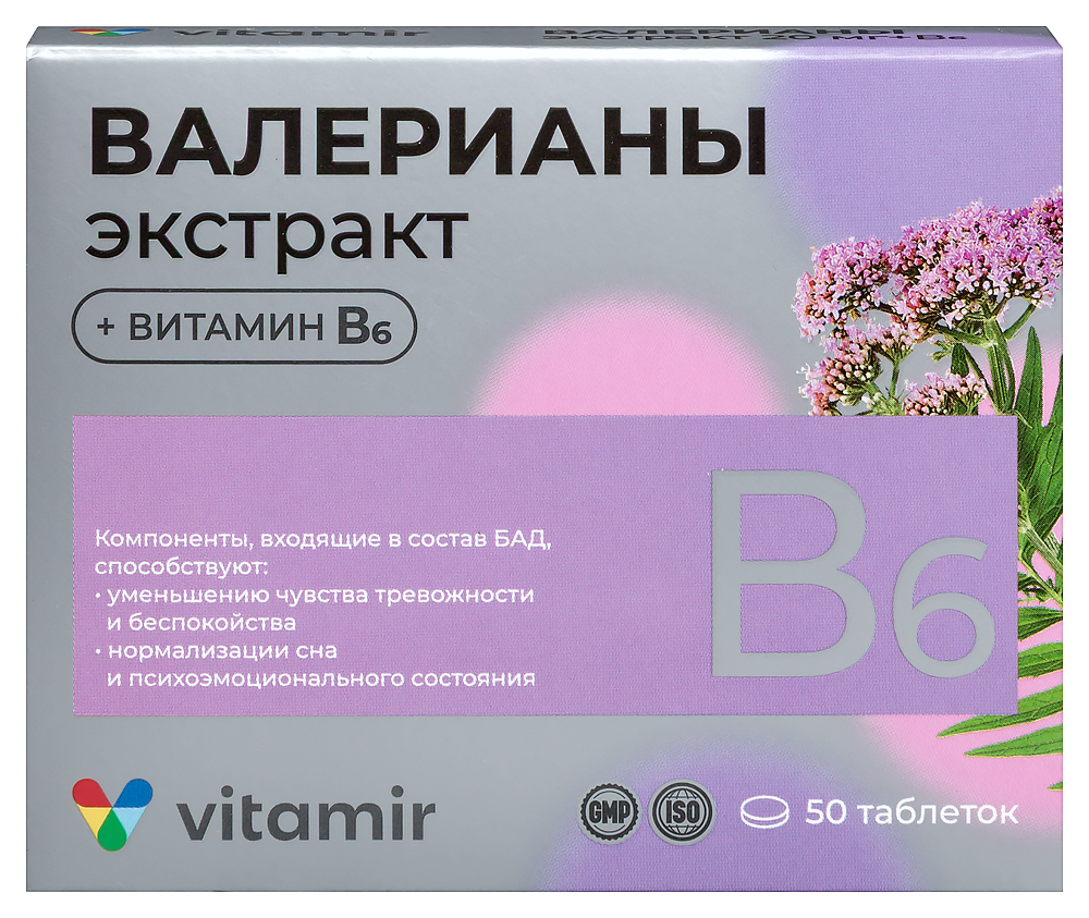 Компоненты биологически активной добавки к пище «Валерианы экстракт 20 мг + B6»