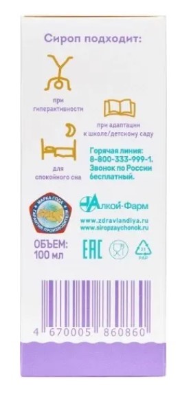 Сироп «Зайчонок®» для детей с 3-х лет «Страна Здравландия®» оказывает мягкое успокаивающее действие.