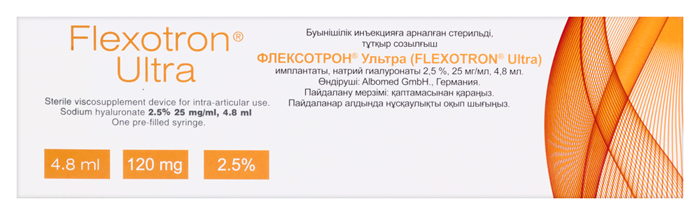 На основании клинических сведений об особенностях биодеградации и продолжительности лечебных эффектов внутрисуставного введения гиалуроновой кислоты предполагается, что биодеградация вязкоэластичного имплантата "ФЛЕКСОТРОН®" происходит в срок от 12 до 24 недель. Клинический эффект лечения сохраняется в течение не менее 6 месяцев.