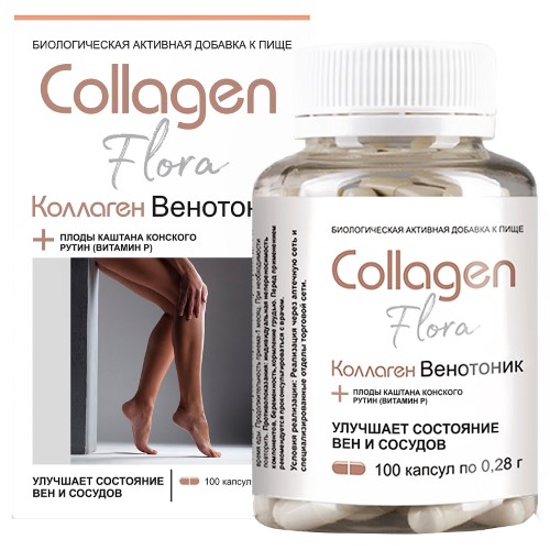 В качестве вспомогательных веществ в оболочку капсулы БАД к пище «КОЛЛАГЕН ВЕНОТОНИК-ФЛОРА» входит пищевая добавка - краситель: Е171 (диоксид титана), разрешенная к применению в Российской Федерации в соответствии с ТР ТС 029/2012 «Требования безопасности пищевых добавок, ароматизаторов и технологических вспомогательных средств».