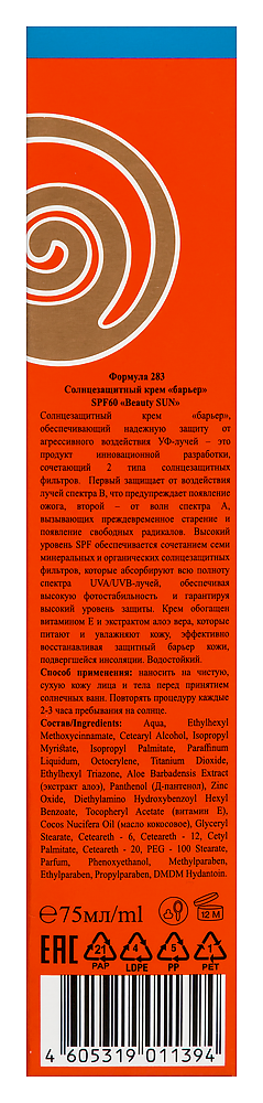 Beauty Sun Солнцезащитный крем «барьер» SPF60