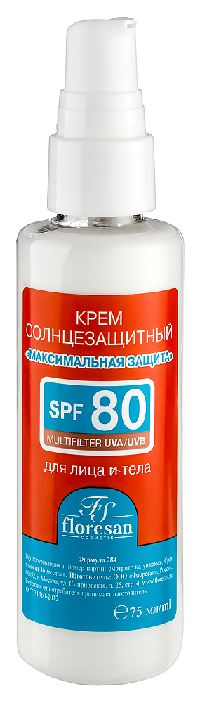 Солнцезащитный крем «максимальная защита», обеспечивающий надежную защиту от агрессивного воздействия УФ-лучей - это продукт инновационной разработки, сочетающий 2 типа солнцезащитных фильтров. Первый защищает от воздействия лучей спектра В, что предупреждает появление ожога, второй - от волн спектра А, вызывающих преждевременное старение и появление свободных радикалов. Высокий уровень SPF обеспечивается сочетанием семи минеральных и органических солнцезащитных фильтров, которые абсорбируют всю полноту спектра UVA/UVB-лучей, обеспечивая высокую фотостабильность и гарантируя высокий уровень защиты. Крем обогащен Д-пантенолом и маслом Ши, которые питают и увлажняют кожу, эффективно восстанавливая защитный барьер кожи, подвергшейся инсоляции. Водостойкий.