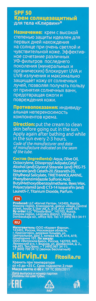 Клирвин ® СОЛНЦЕЗАЩИТНЫЙ SPF 50 идеален для первых дней нахождения на солнце при очень светлой и чувствительной коже.