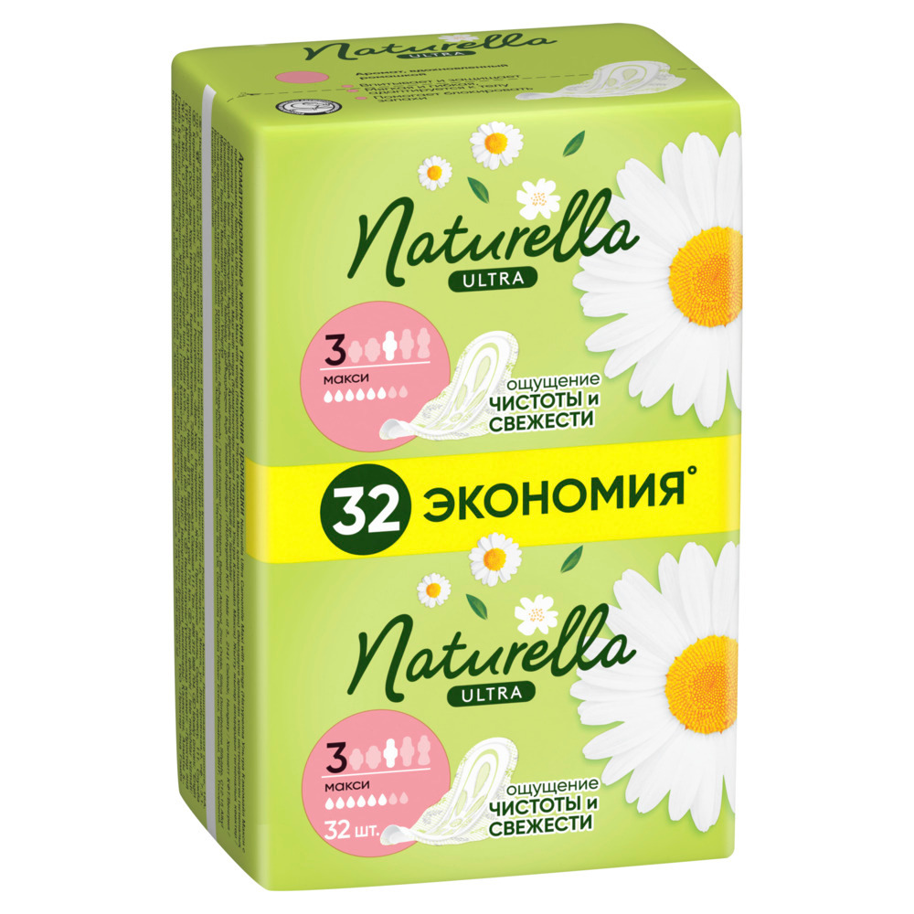 Гигиенические прокладки Naturella Ultra Maxi толщиной 2 мм обладают ароматом ромашки и имеют желобки в форме цветка с эксклюзивной впитывающей системой, а превосходно впитывающие гелевые шарики помогают распределять и удерживать жидкость внутри, обеспечивая сухость и комфорт.