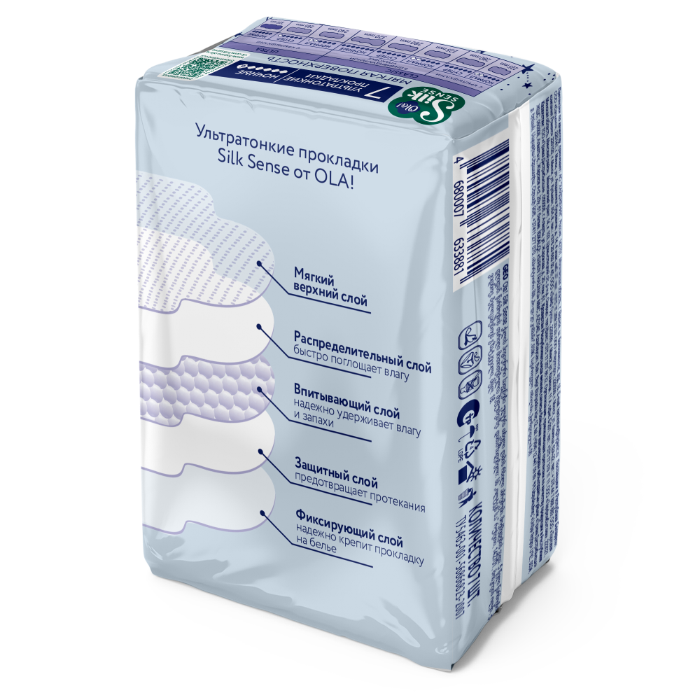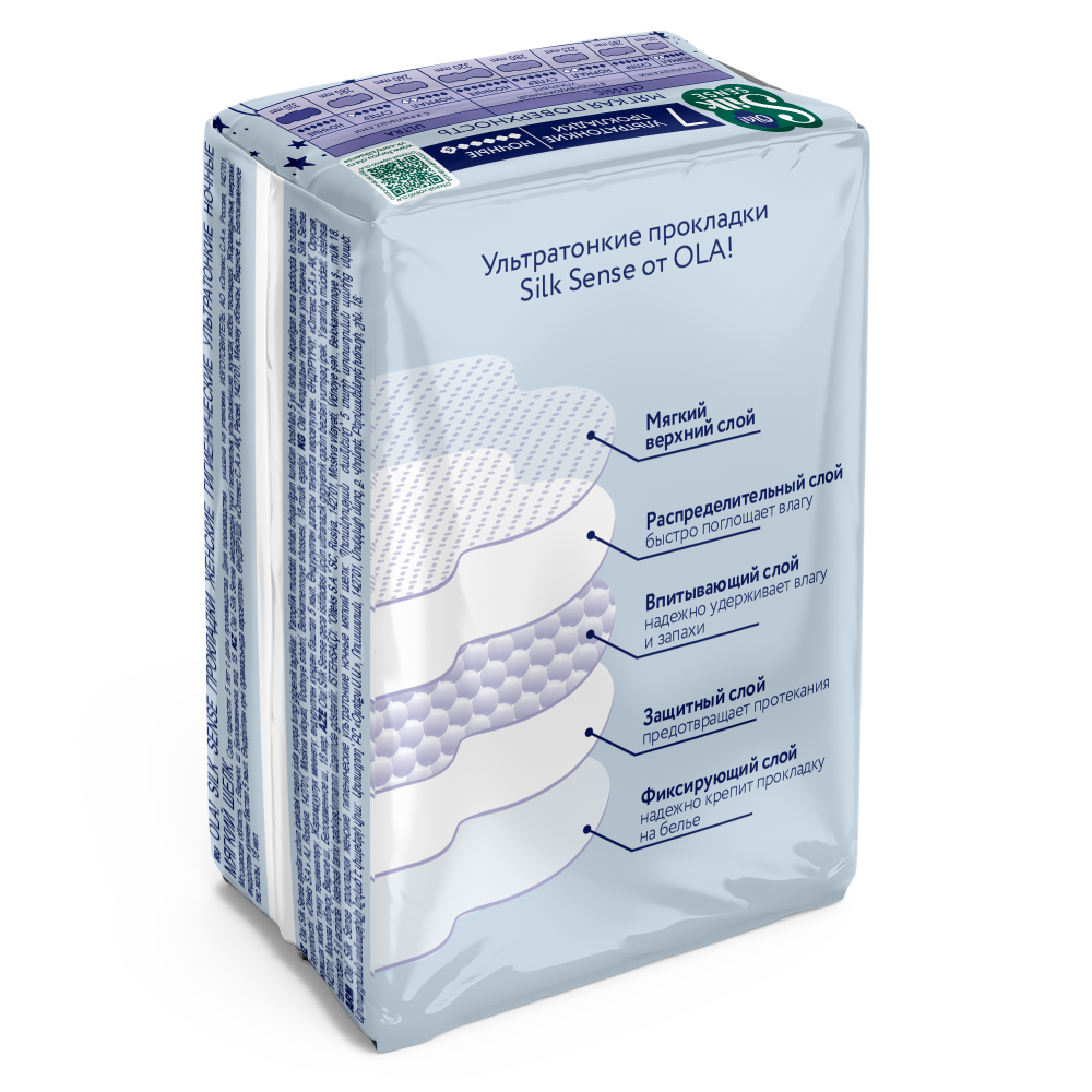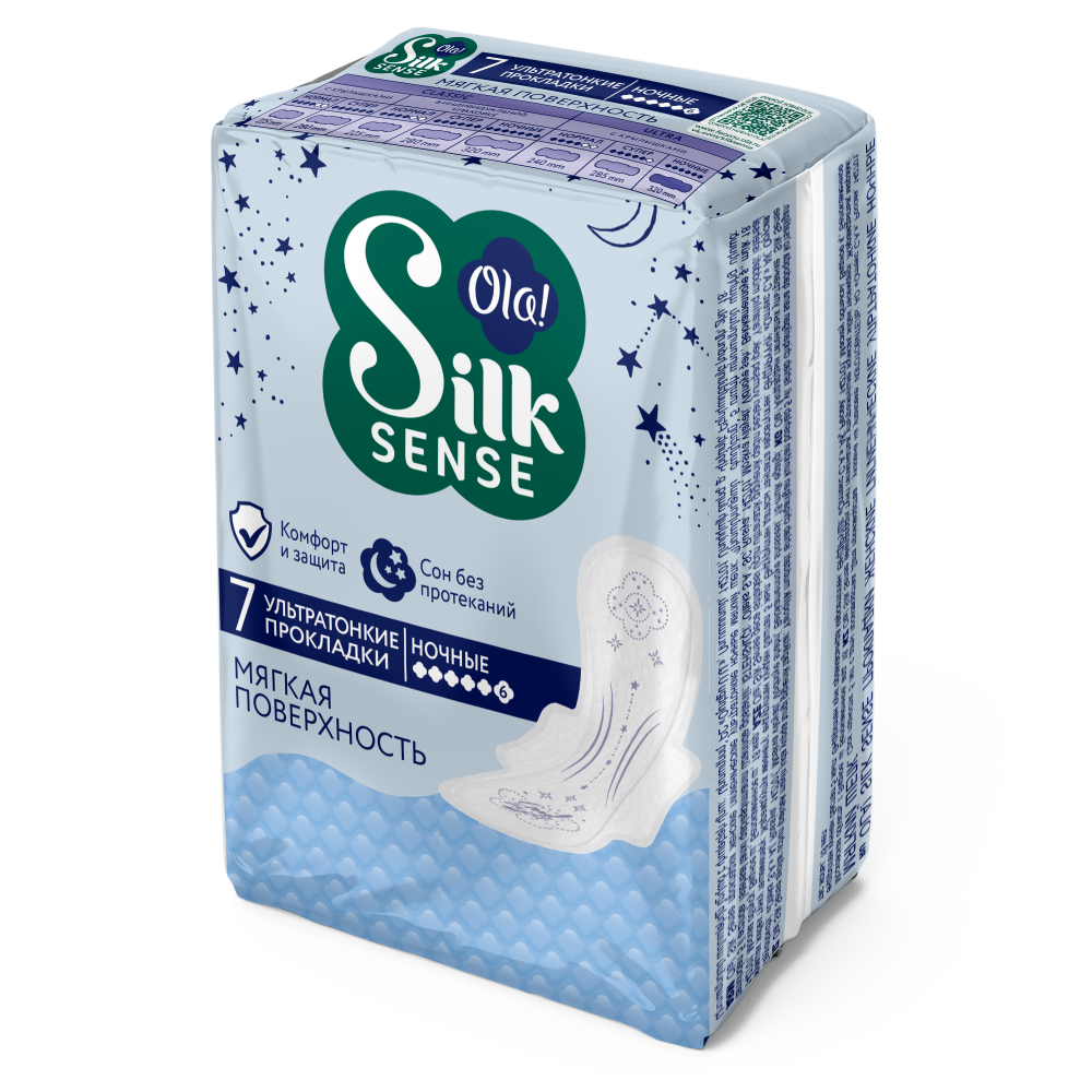 OLA SILK SENSE ПРОКЛАДКИ УЛЬТРАТОНКИЕ НОЧНЫЕ МЯГКИЙ ШЕЛК - мягкая поверхность, комфорт и защита, сон без протеканий