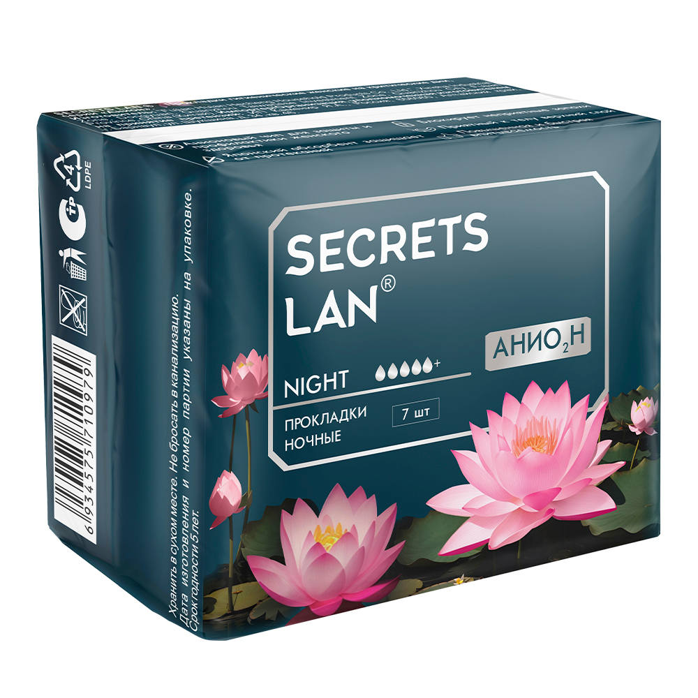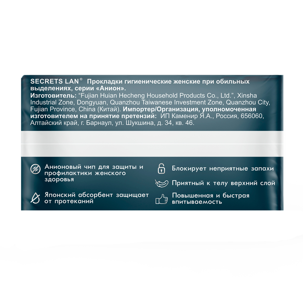 СЕКРЕТЫ ЛАН АНИОН ПРОКЛАДКИ ЖЕНСКИЕ ГИГИЕНИЧЕСКИЕ ПРИ ОБИЛЬНЫХ ВЫДЕЛЕНИЯХ - в мягкой фольгированной упаковке с клапаном, который позволяет герметично закрыть упаковку после извлечения прокладки.