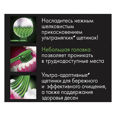 Маленькая головка мягкой зубной щетки помогает добраться до труднодоступных областей, чтобы избежать риска заболеваний десен и кариеса. Эта новая мягкая щетка обладает в 3 раза большим количеством щетинок, чем обычная зубная щетка, чтобы помочь вам получить идеальную улыбку.