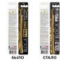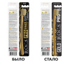 Помимо высоких гигиенических и эксплуатационных характеристик, она отличается необычной цветовой гаммой, сочетанием черного бархата и золота в оформлении ручки, щетины и блистера.